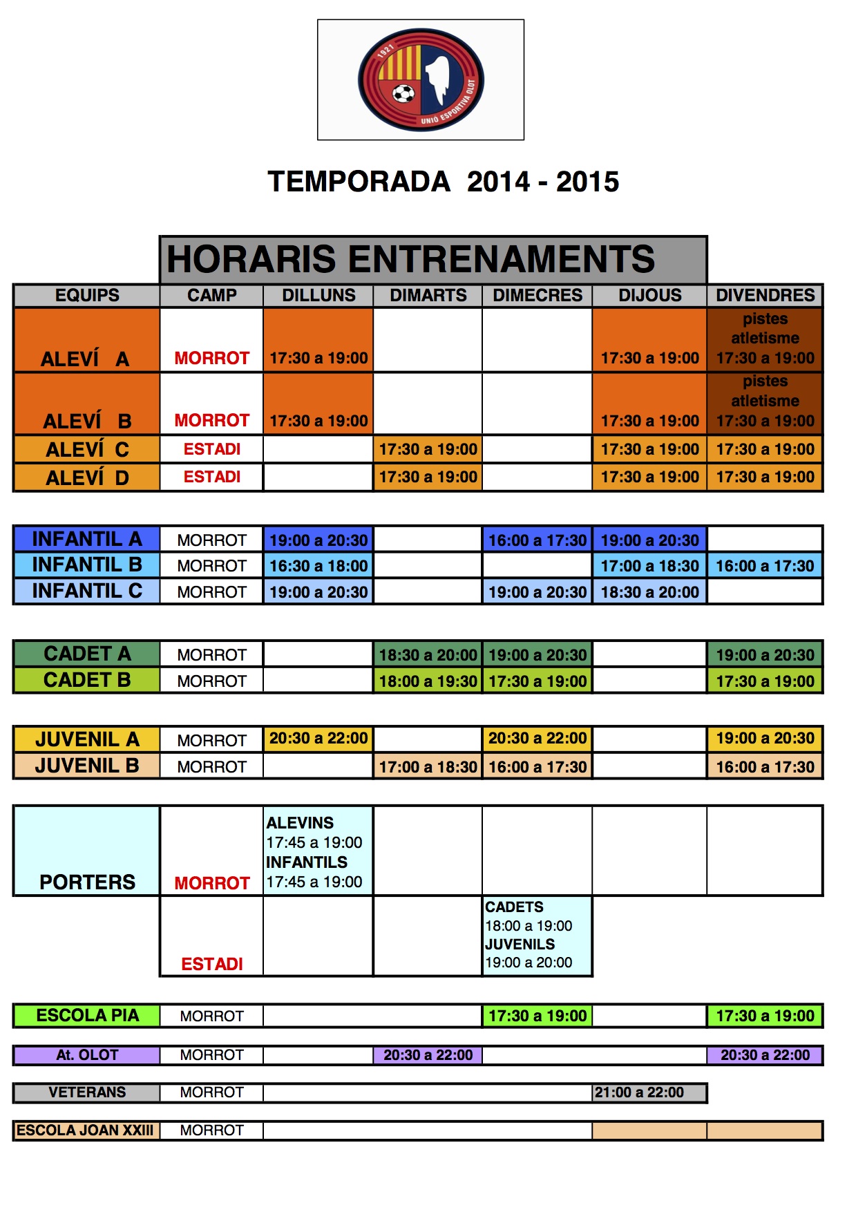 Calendari temporada 14/15