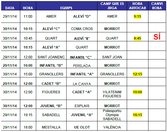 L’AGENDA DE LA PRÒXIMA JORNADA:
