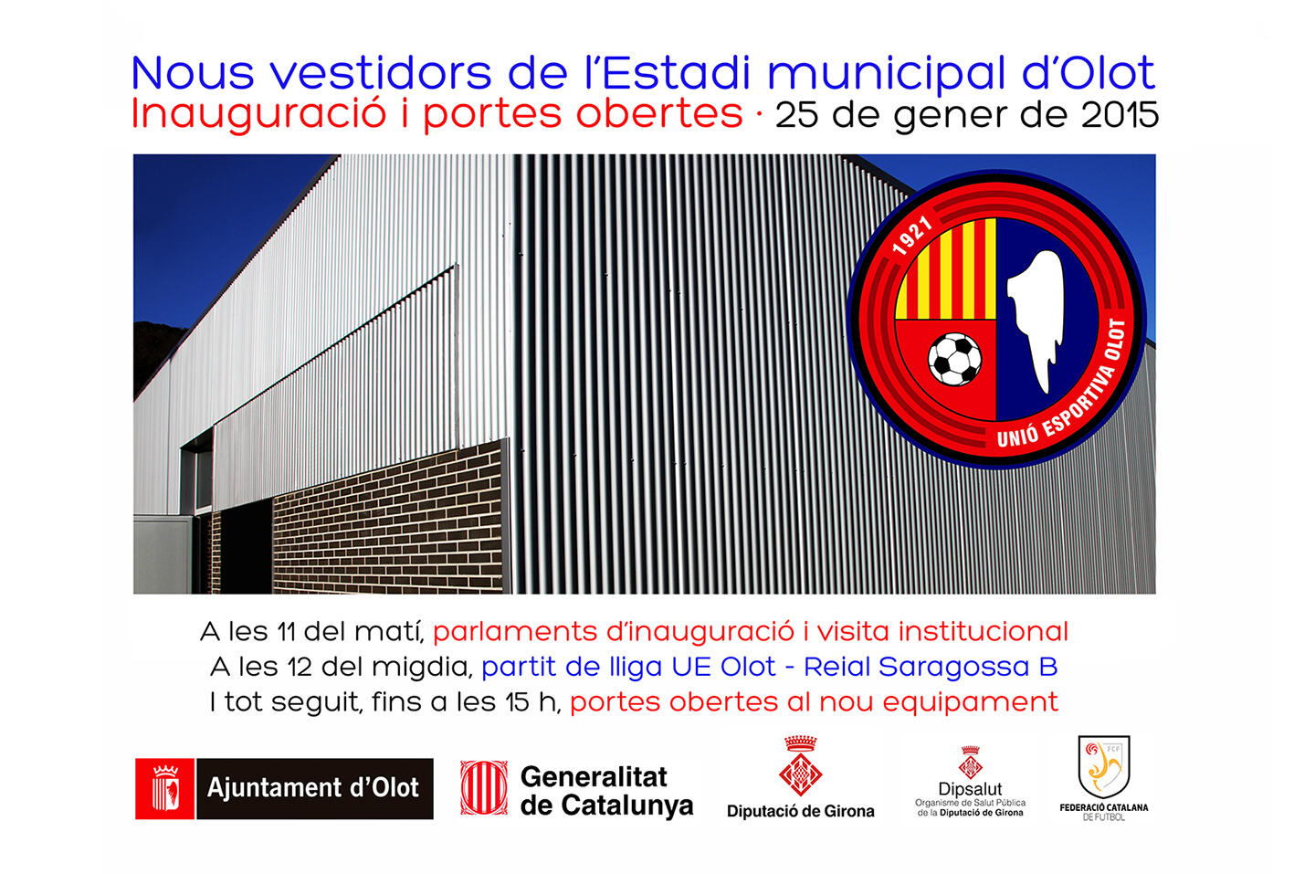 Una part de la primera fase de la remodelació de l'Estadi Municipal ja és una realitat. El proper diumenge 25 de gener, coincidint amb el partit matinal entre l'Olot i el Saragossa B, es presentaran en societat els nous vestidors.