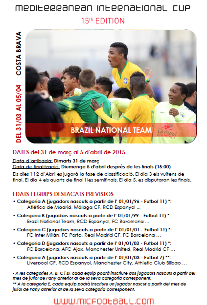 En el següent enllaç trobareu un dossier amb tota la informació de la 15a edició del MIC, que es celebra del 31 de març al 5 d’abril a la Costa Brava. Unes dades d’interés per pares, mares i jugadors del futbol base de la Unió Esportiva Olot: