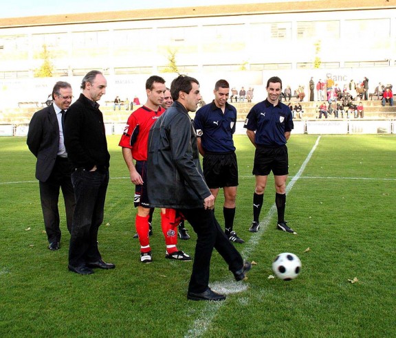 *Porras va fer el xut d’honor en el partit Olot-Sant Hilari (Regional Preferent) de l’any 2009. Aleshores, el president ja era Joan Agustí i el capità, Abel Solé. // Antoni Carrera
