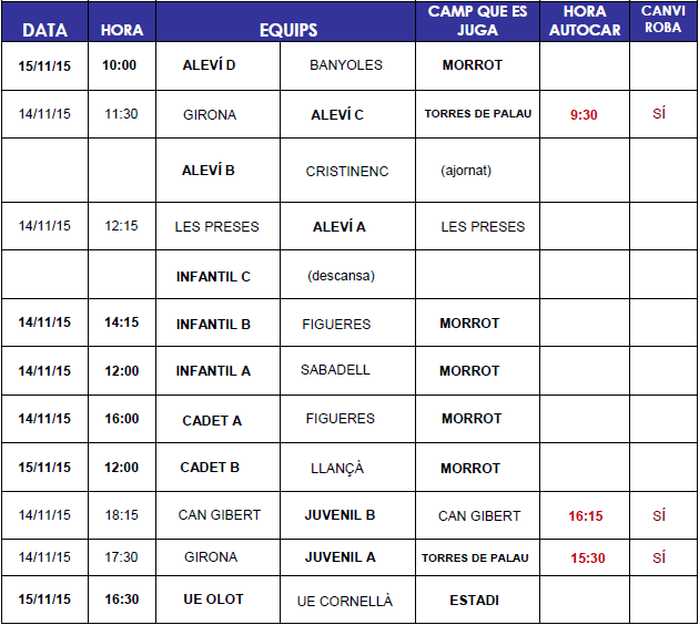 –> Partits setmana 14 i 15 Novembre