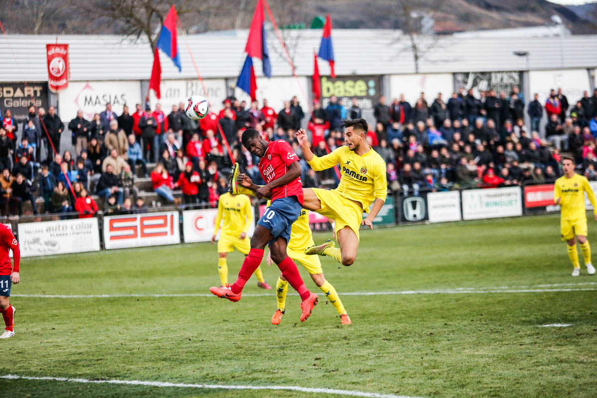 La Unió Esportiva Olot treu la pilota al Villarreal B i el posa contra les cordes, mereixent clarament la victòria en la segona meitat. Carlos Martínez ha avançat els groguets però Sana, després d'una gran jugada col·lectiva, ha signat les taules.