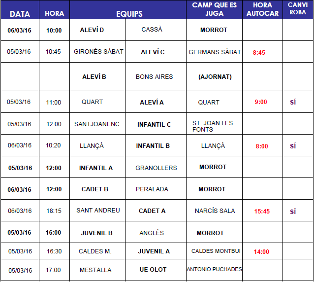 –> Partits setmana 5 i 6 març