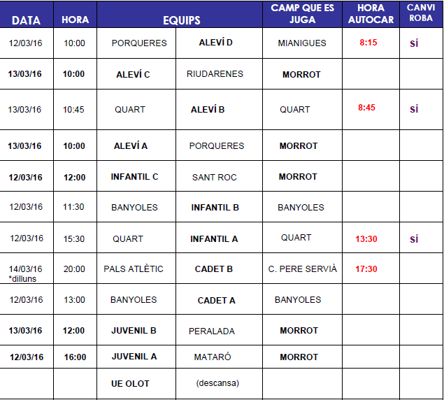 –> Partits setmana 12 i 13 març