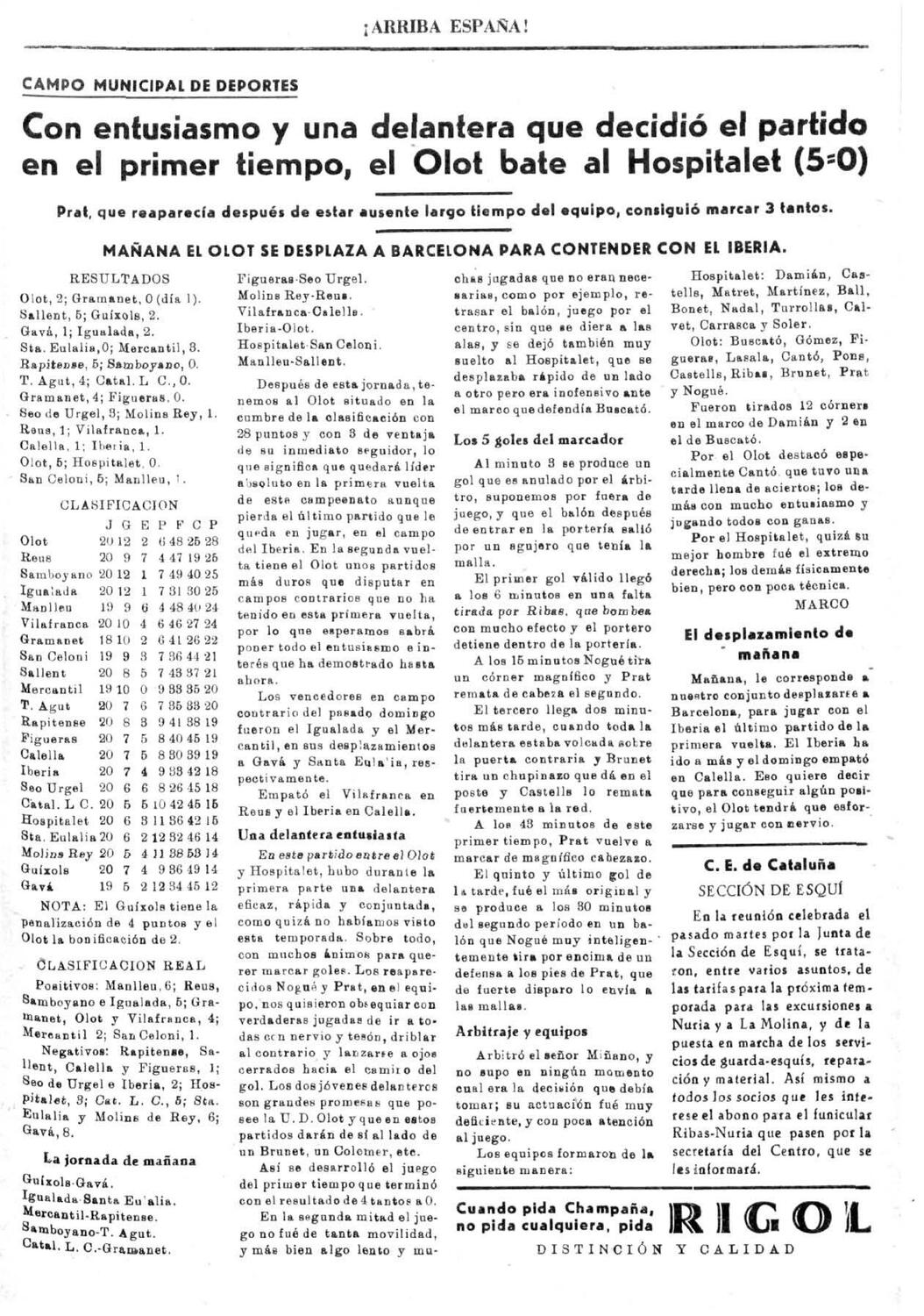 Últims cartutxos de la temporada amb tot per decidir. L’avantatge per als nostres jugadors és que juguem tres dels quatre partits com a local en un Estadi Municipal que sempre està a l’alçada i on fa molts mesos que no perdem. L’empat al camp de l’Espanyol ens deixa una lectura més que positiva i indicis agradables; coratge, compromís, unió i una afició que està posant tota la carn a la graella per veure l’equip un any més a Segona B. Ara necessitem victòries, punts que ens acostin a la salvació, i els tres d’aquest diumenge són completament innegociables per a la nostra missió. Ens visita un Hospi que també viu un curs accidentat amb canvis a la plantilla i a la banqueta (Antonio Olmo i Miquel Corominas han rellevat Martí Cifuentes) i que ha de sumar a la Garrotxa després de l’ensopegada inesperada contra el Llosetense. Un conjunt farcit de vells coneguts com els defenses Guillem Savall i Juanjo Prior, arribat en aquest mercat d’hivern, el migcampista David López o el davanter David Corominas, un dels referents dels dos primers anys de la UEO a la categoria de bronze. Els riberencs tenen les baixes de Giaquinto i Ton Alcover, lesionats.