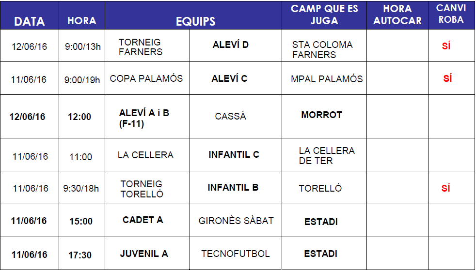 Partits setmana 11 i 12 juny