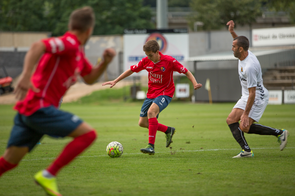 Millora evident de la Unió Esportiva Olot, que supera un CF Peralada encara en construcció. Els gols van ser obra de Jose Martínez, Marc Mas i Dembo, culminant una bona acció personal.