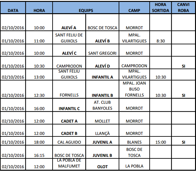 Partits del futbol base (1 i 2 d’octubre)