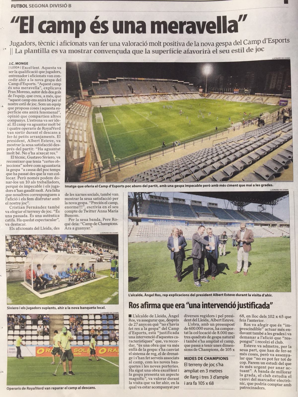 Així en parlaven aquesta setmana els mitjans de la Terra Ferma després d’instal·lar la nova gespa al Camp d’Esports del Lleida Esportiu: