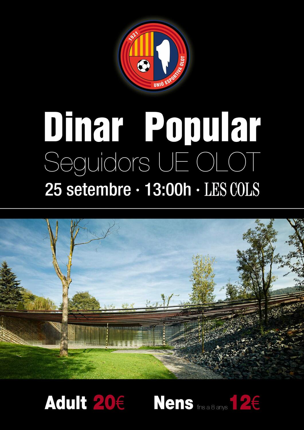 Coincidint amb la prèvia del partit contra la UE Figueres, el diumenge 25 de setembre us convidem al dinar popular per als socis i seguidors de la Unió Esportiva Olot al Restaurant Les Cols.