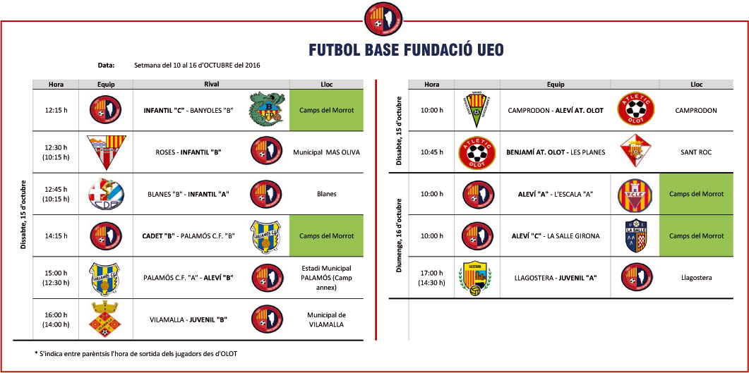 La jornada al futbol base (8 i 9 octubre)