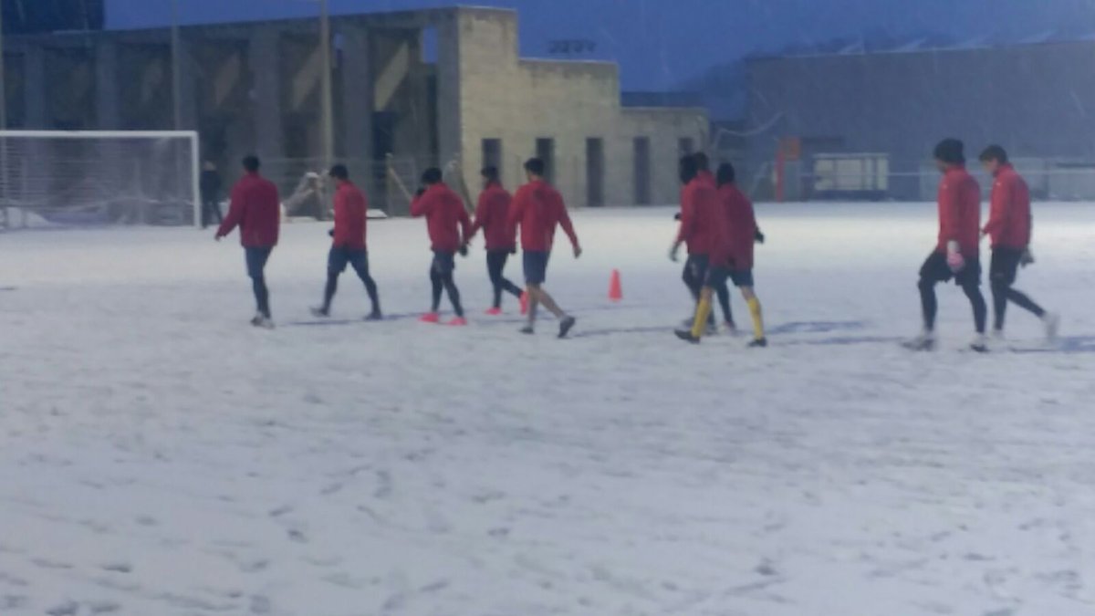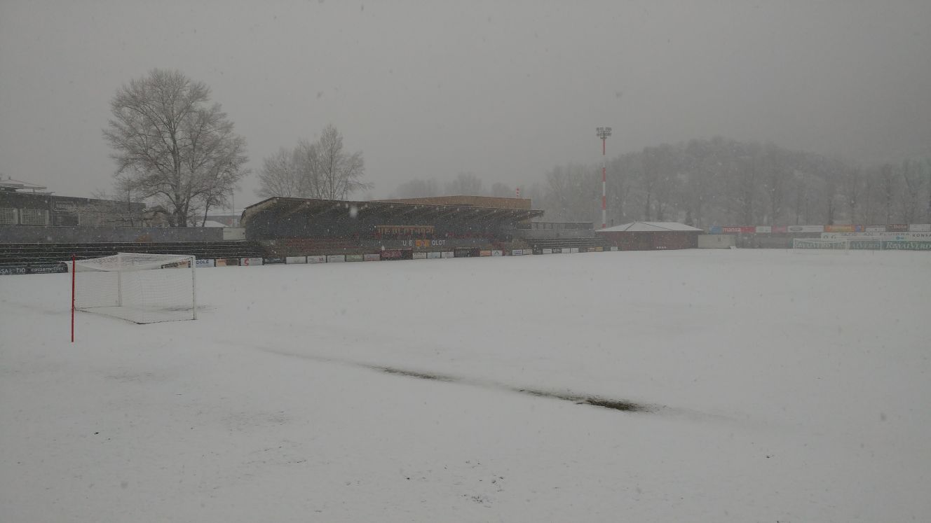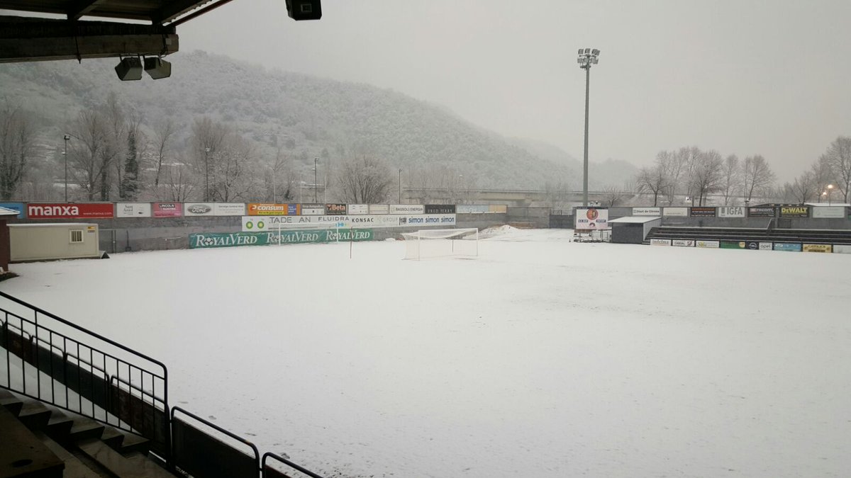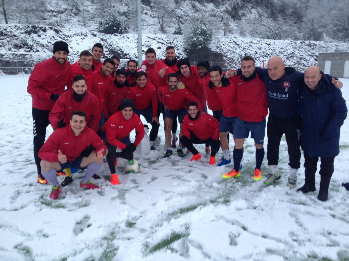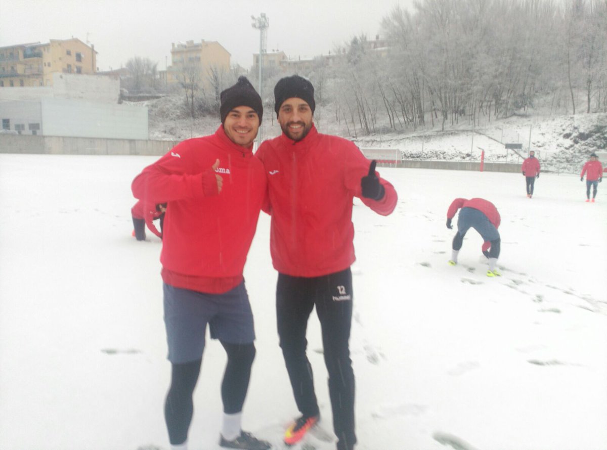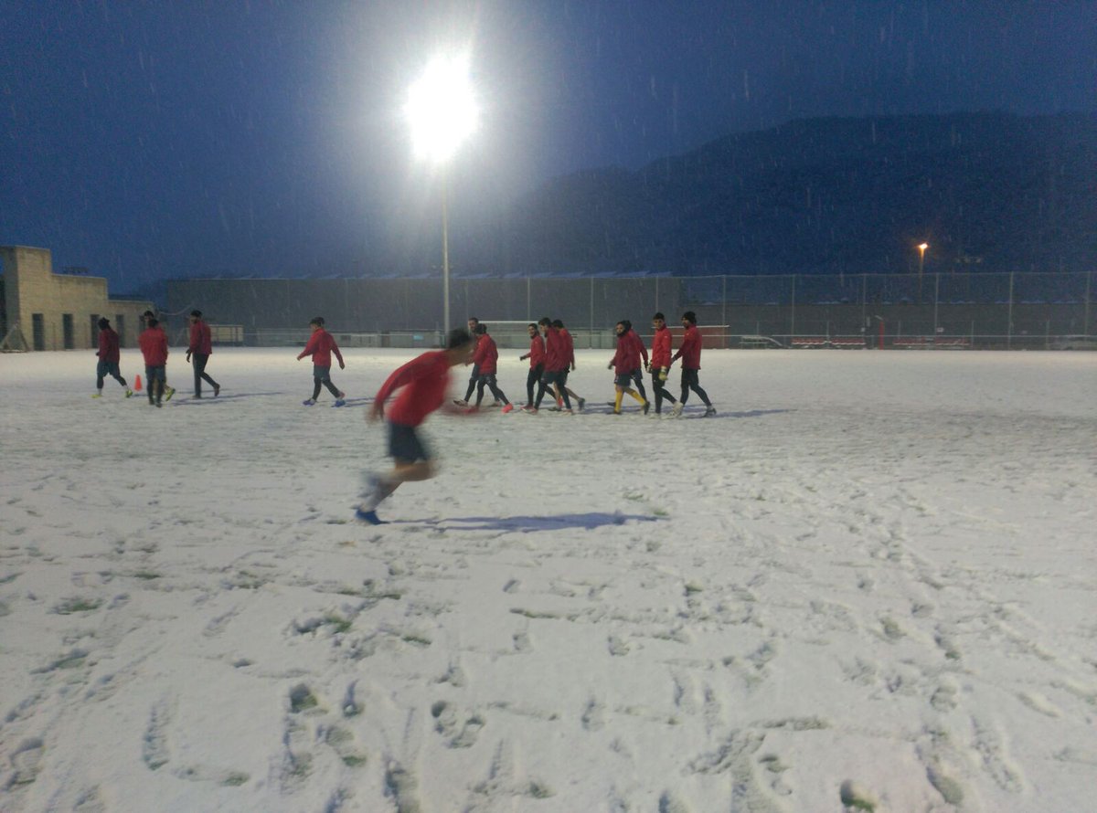 Un dimecres diferent, el que ha viscut la Unió Esportiva Olot, que ha entrenat sota un temporal de fred i neu insòlit en els últims anys. La nevada ha estat considerable a la ciutat i a la comarca de la Garrotxa, però els homes de Calderé s’han entrenat igualment per preparar el partit de diumenge al Nou Sardenya (Europa-UEO, 12h). Ho han hagut de fer al camp del Morrot, ja que l’Estadi Municipal estava completament blanc i amb gruixos importants de neu sobre la gespa.