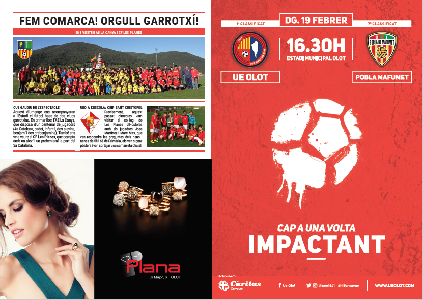 Abans de cada partit a l’Estadi Municipal, els seguidors de la Unió Esportiva Olot reben un fullet de quatre pàgines amb continguts diversos sobre el partit i el club.