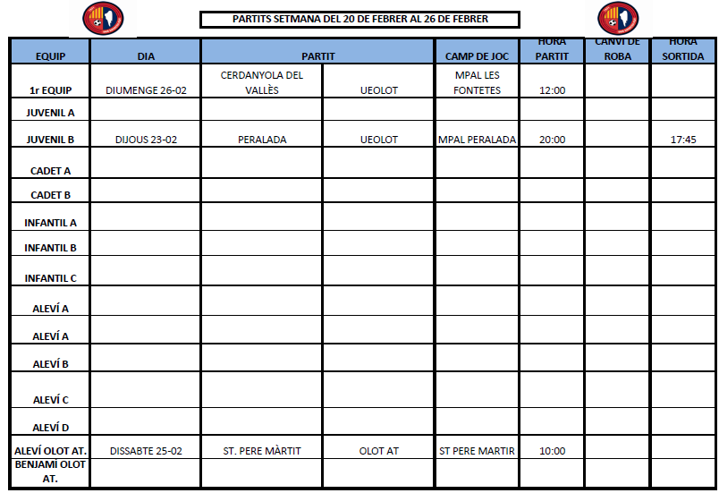 –> LA PROPERA SETMANA (no hi ha lliga*):
