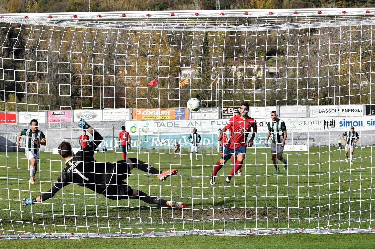 La Unió Esportiva Olot competeix a alt nivell a Peralada i s'avança amb un gran cacau d'Héctor Simón, però veu com li remunten a la represa amb una genialitat d'Àlamo i una diana de Forgas en temps de descompte. A la grada, golejada de la Marea Vermella amb mig miler de seguidors.