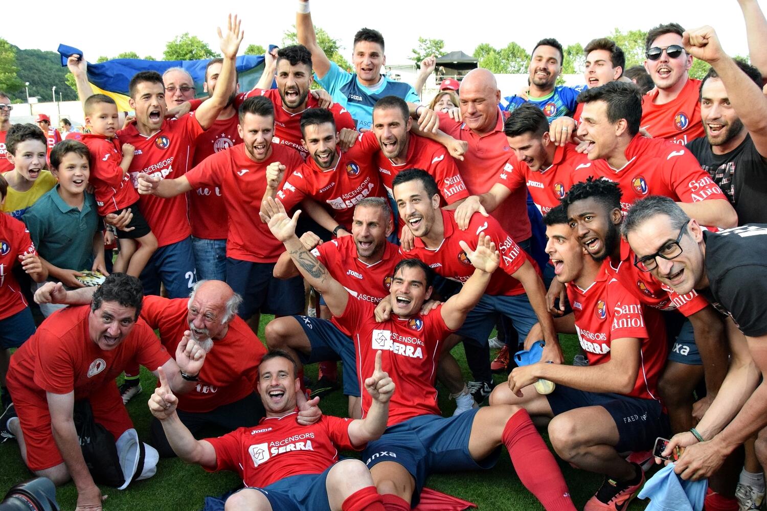 La Unió Esportiva Olot retorna a la categoria de bronze del futbol estatal després d’empatar a casa contra l’Sporting B i fer bo el resultat de l’anada a Gijón. Els asturians van marcar ben aviat, però la UEO va treure el caràcter i l’orgull del campió a la segona part i Marc Mas va firmar una diana que val un ascens. Sense paraules per descriure el suport de l’afició, ahir quasi 3.000 ànimes tenyint de vermell l’Estadi i els carrers de la nostra ciutat.