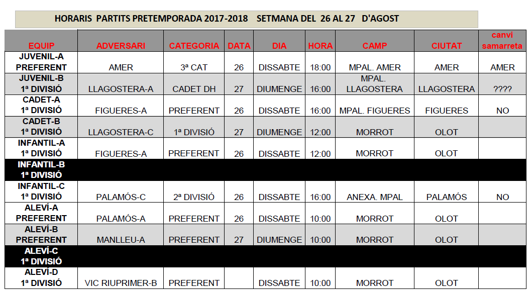 Partits del futbol base (26 i 27 d’agost) 25 ag. 2017Oriol Boix BufiasFutbol BASE, Cròniques, Futbol FEMENÍ, Escola de FUTBOL, General, Actualitat, Destacat0 Foto portada: JM Buxasas