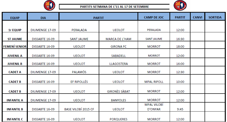 Partits del cap de setmana al futbol base (16 i 17 setembre) 12 set. 2017Oriol Boix BufiasActualitat, Destacat, Futbol BASE, Cròniques, Notícies, Futbol FEMENÍ, Escola de FUTBOL, General0 Foto: Isaac Morchón-UE Olot