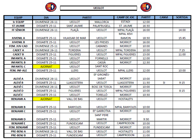 La propera jornada al FUTBOL BASE (25 i 26 novembre)
