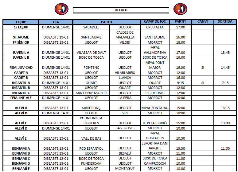 La propera jornada al FUTBOL BASE (13 i 14 gener)