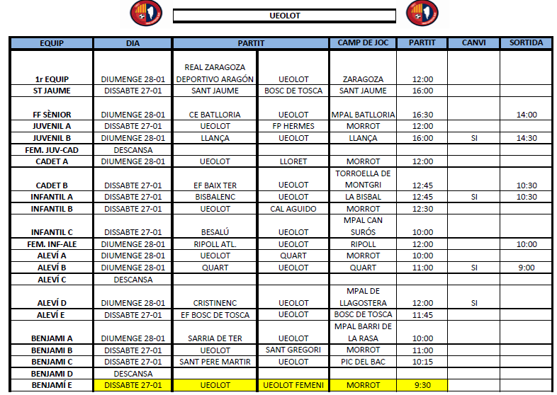 La propera jornada al FUTBOL BASE (27 i 28 gener)