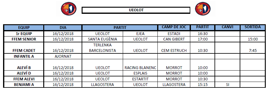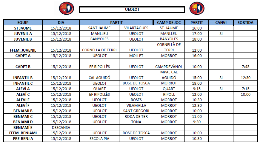 La propera jornada al FUTBOL BASE (15 i 16 desembre) 10 des. 2018Oriol Boix BufiasActualitat, Destacat, Notícies0