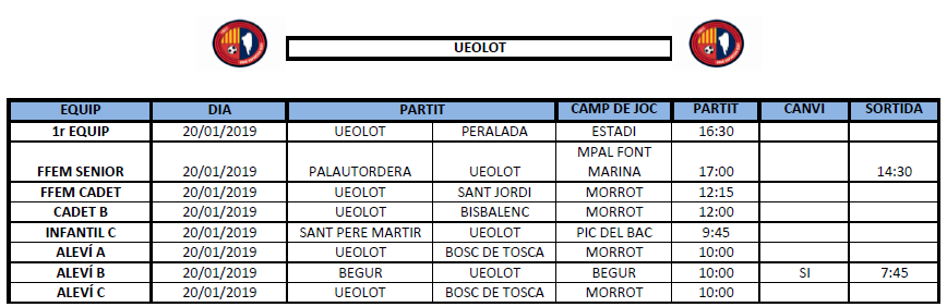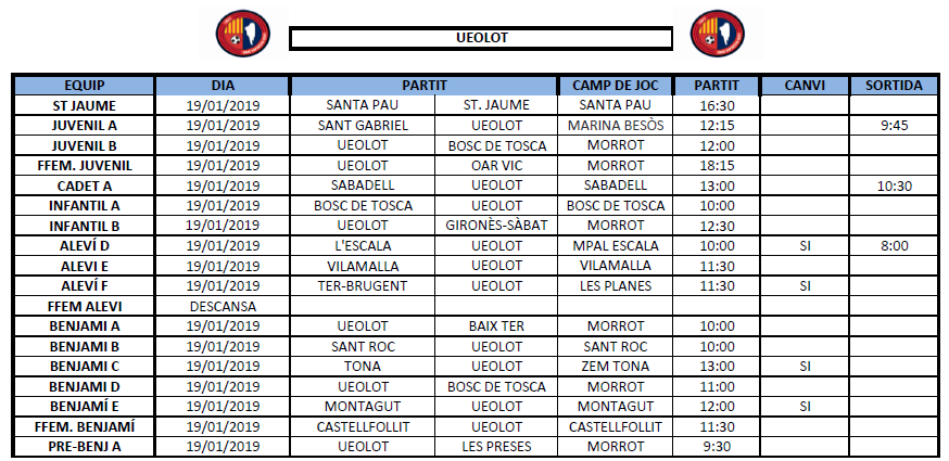 La propera jornada al FUTBOL BASE (19 i 20 gener) 16 gen. 2019Oriol Boix BufiasClub, Actualitat, Destacat, Notícies, General0