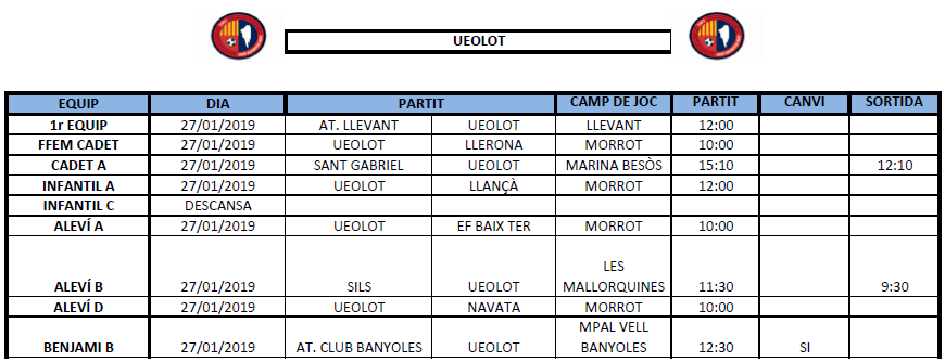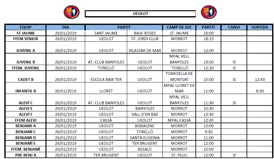 La propera jornada al FUTBOL BASE (26 i 27 de gener) 23 gen. 2019Oriol Boix BufiasActualitat, Destacat, Notícies, General0