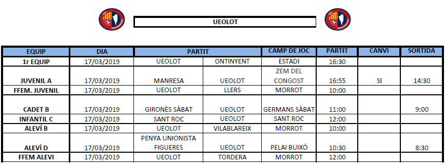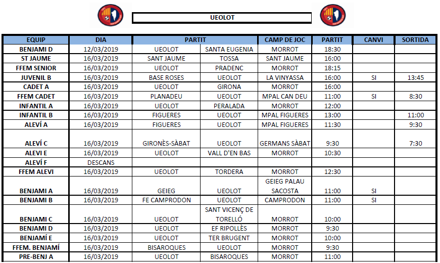 La propera jornada al FUTBOL BASE (16 i 17 març) 12 març 2019Oriol Boix BufiasSECCIONS, General, Actualitat, Destacat, Futbol BASE, Notícies, Futbol FEMENÍ, Escola de FUTBOL0