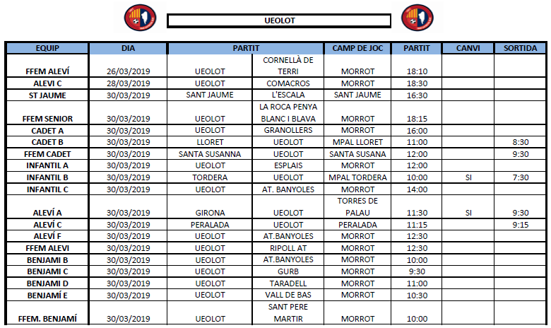 La propera jornada al FUTBOL BASE (30 i 31 de març) 25 març 2019Oriol Boix BufiasSECCIONS, General, Actualitat, Destacat, Futbol BASE, Notícies, Futbol FEMENÍ, Escola de FUTBOL0