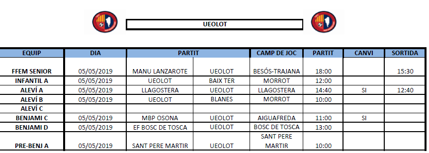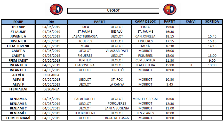 La propera jornada al FUTBOL BASE (4 i 5 maig) 30 abr. 2019Oriol Boix BufiasFutbol BASE, Notícies, Futbol FEMENÍ, Escola de FUTBOL, SECCIONS, General, Actualitat, Destacat0