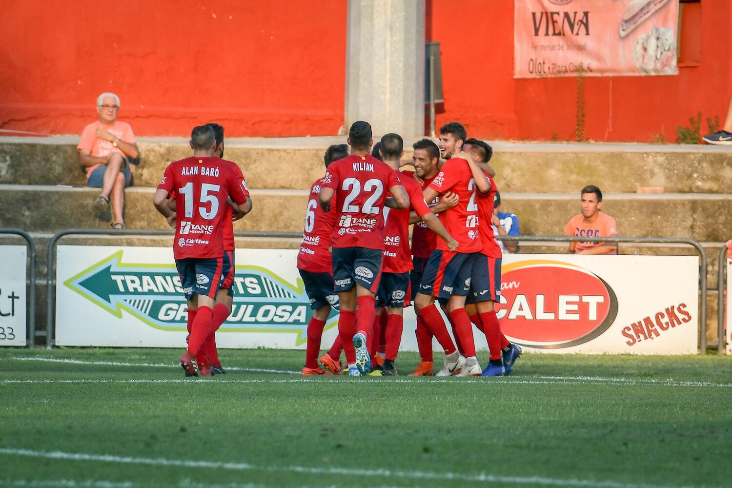 Incidències: partit corresponent a la primera jornada del campionat de lliga del grup tercer de Segona B amb la presència de 895 espectadors a l’Estadi Municipal d’Olot. En la prèvia s’ha fet un reconeixement a Quim Danés, metge i directiu del club, que deixa el càrrec després d’una llarga trajectòria amb aquesta junta directiva.