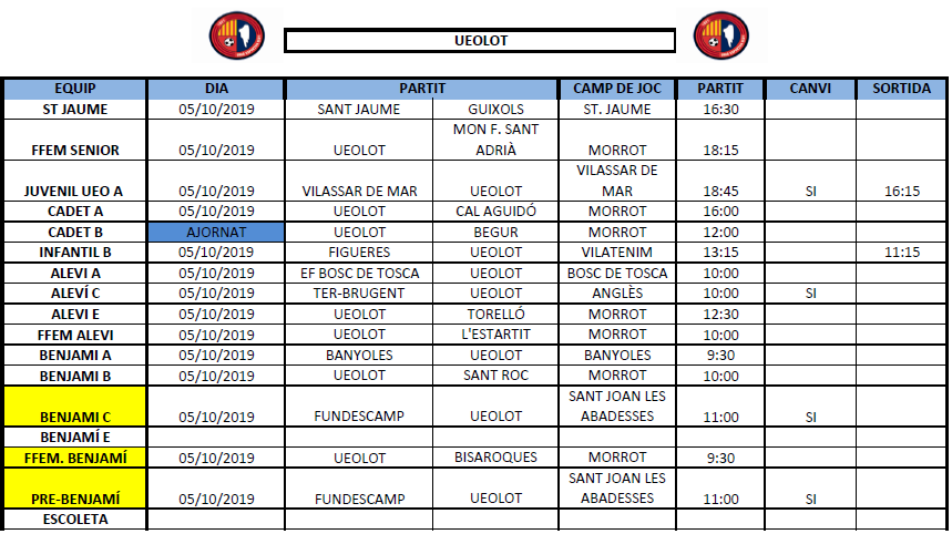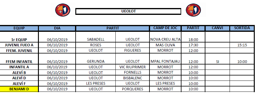 Agenda de la jornada al FUTBOL BASE (5 i 6 octubre) 02 oct. 2019Oriol Boix BufiasFutbol BASE, Notícies, Futbol FEMENÍ, Escola de FUTBOL, SECCIONS, General, Actualitat, Destacat0