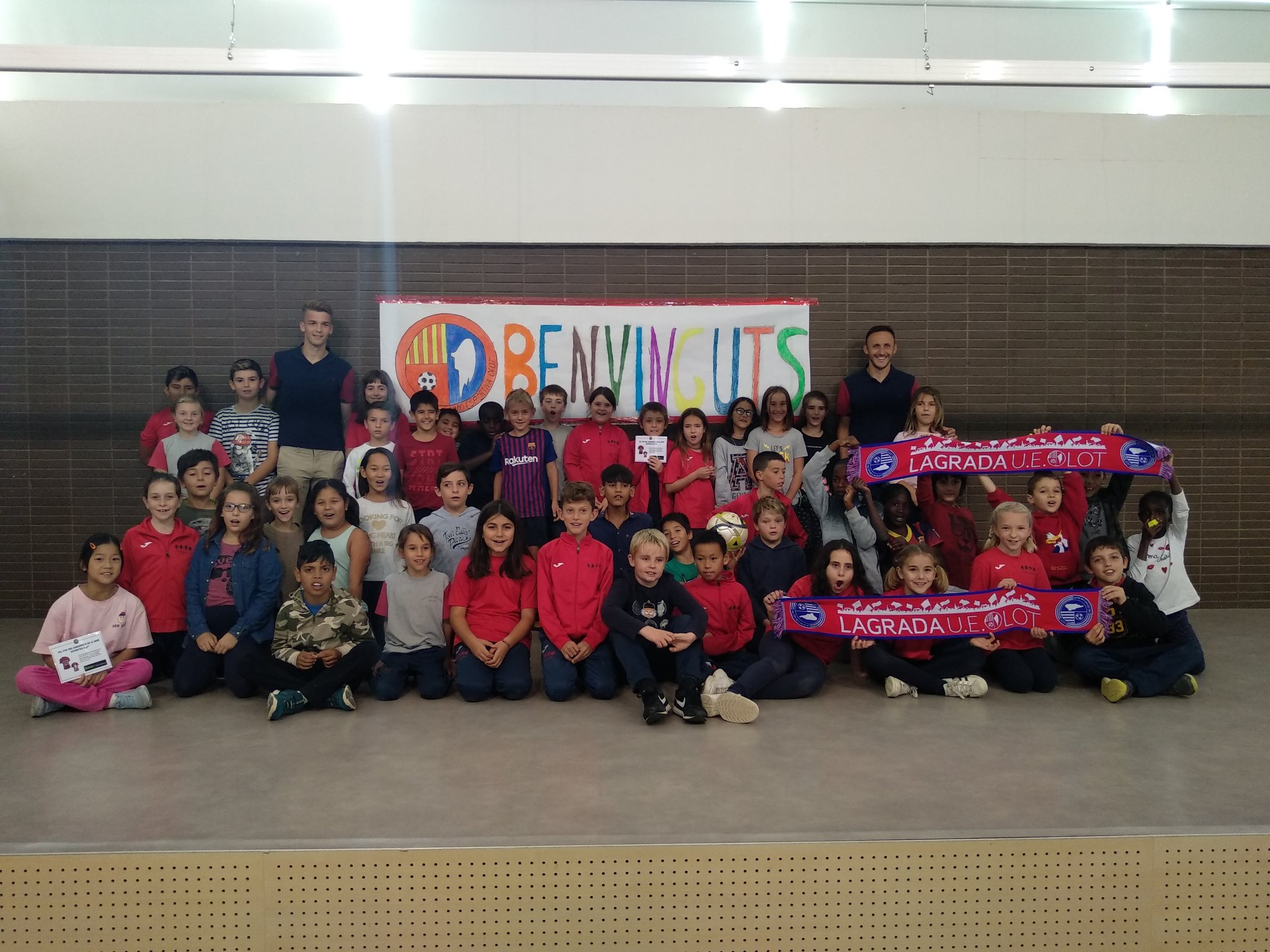 Seguint amb la ruta pels centres educatius de la ciutat, els jugadors de la Unió Esportiva Olot Jordi Xumetra i Arnau Comas han compartit la tarda d’aquest divendres amb els alumnes de 4rt de Primària del CEIP Sant Roc del barri olotí. La rebuda ha estat espectacular amb una pancarta de benvinguda mentre sonava de fons l’himne de la UEO i els nens i nenes ovacionaven els dos futbolistes. Tot seguit, torn per a les preguntes més curioses, sortejos de bufandes i samarretes oficials, signatures i fotografia de família en una altra gran jornada transmetent els valors del club a les aules. Moltes gràcies Sant Roc per aquesta acollida! Us esperem a tots i totes aquest diumenge a l’Estadi Municipal!