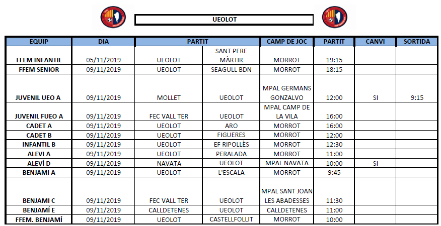Agenda de partits al FUTBOL BASE (9 i 10 novembre) 06 nov. 2019Oriol Boix BufiasFutbol BASE, Notícies, Futbol FEMENÍ, Escola de FUTBOL, SECCIONS, General, Actualitat, Destacat0