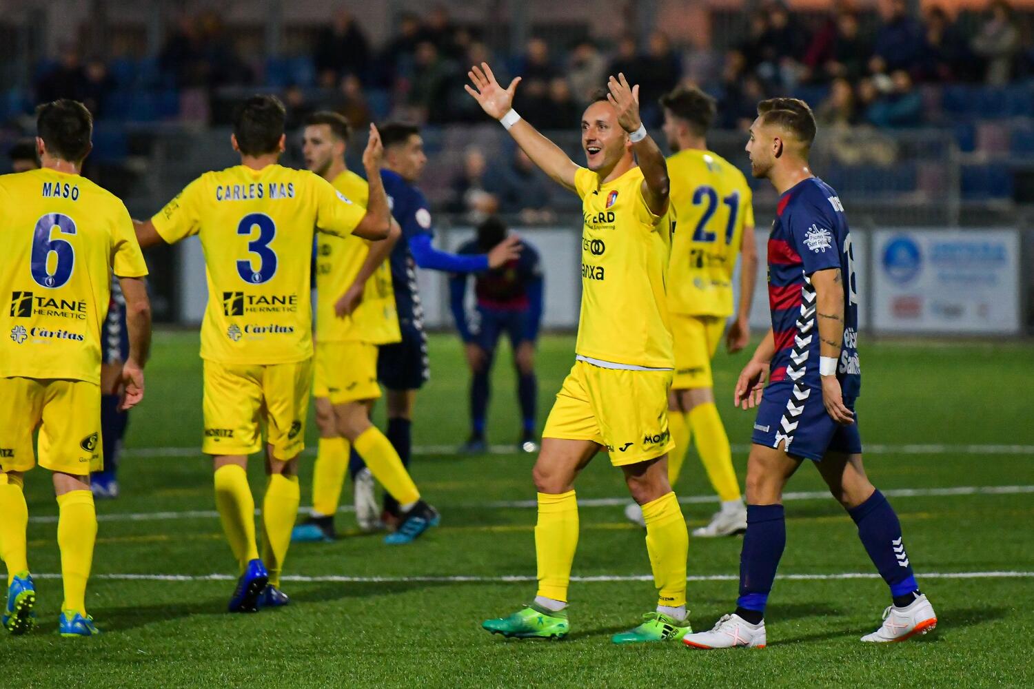 UE Llagostera: Marcos, Aimar (Dalmau, 68′), Lucas Viale, Sascha, Sergio Cortés, Maynau, Crespo (Kuku, 45′), David G., Diego, Magallán i Nahuel (Yeray, 93′).