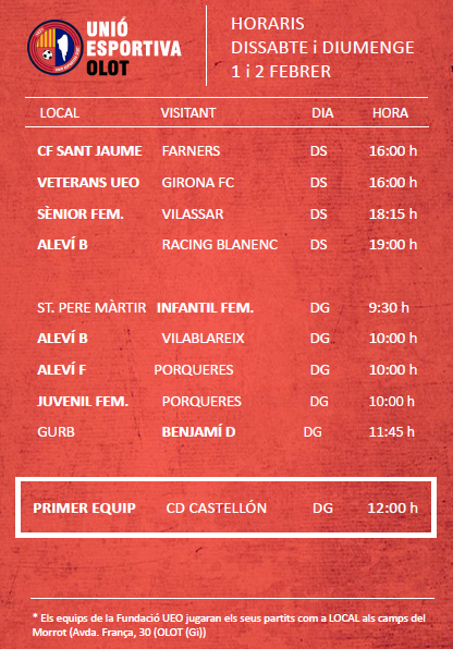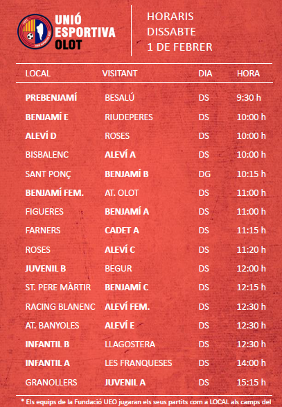 Agenda de partits al FUTBOL BASE (1 i 2 febrer) 28 gen. 2020Oriol Boix BufiasFutbol FEMENÍ, Escola de FUTBOL, SECCIONS, General, Actualitat, Destacat, Futbol BASE, Notícies0