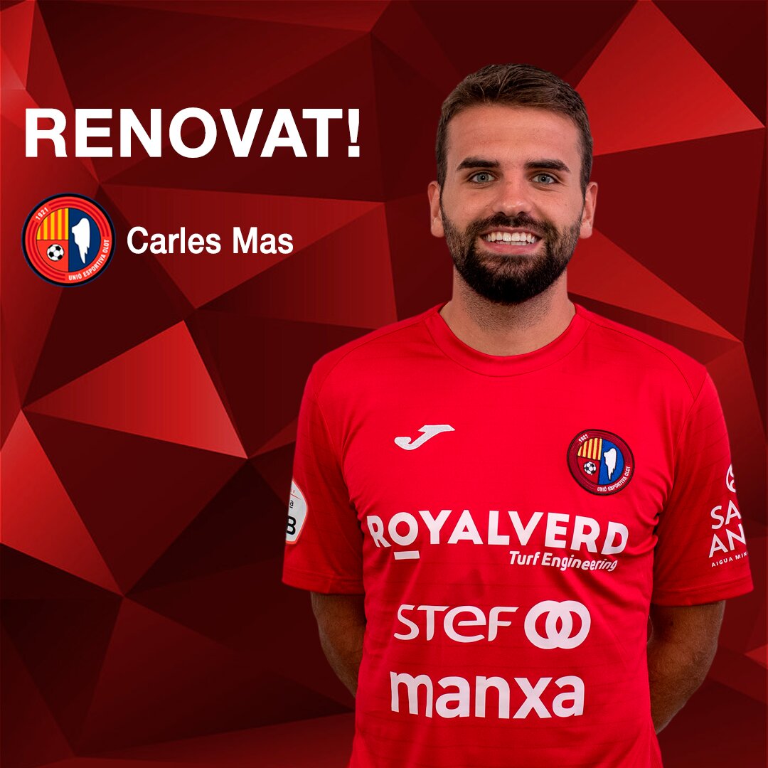 El central Carles Mas referma la seva implicació amb el projecte de la Unió Esportiva Olot i vestirà de vermell una altra temporada. El futbolista del Pla de l’Estany, un dels més utilitzats per a Raúl Garrido en la defensa menys golejada de la lliga, inaugurarà el seu quart curs al club garrotxí i esdevè el vuitè jugador de la plantilla en concretar les seves intencions.