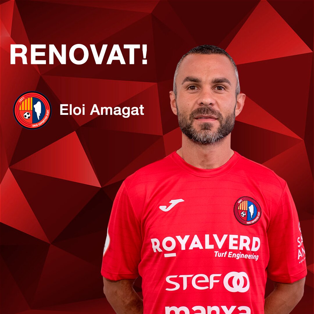 El futbolista gironí prolonga el seu recorregut a la Unió Esportiva Olot per una temporada més, la tercera consecutiva de vermell. Una altra renovació important d’un jugador amb ascendència, ofici i verticalitat al centre del camp. Eloi Amagat, de 35 anys i amb una trajectòria inqüestionable en el món del futbol, continuarà portant la batuta al costat d’homes com Pedro del Campo o Héctor Simón.