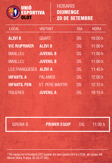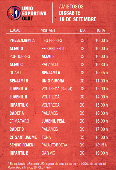 Agenda d’amistosos al FUTBOL BASE (19 i 20 setembre) 17 set. 2020Oriol Boix BufiasNotícies, Futbol FEMENÍ, Escola de FUTBOL, SECCIONS, General, Destacat, Futbol BASE0