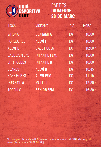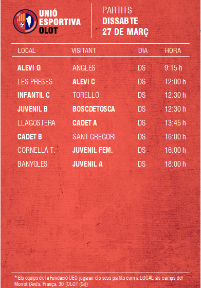 L’agenda de la jornada al FUTBOL BASE (27 i 28 març) 23 març 2021Oriol Boix BufiasActualitat, Destacat, Futbol BASE, Notícies, Futbol FEMENÍ, Escola de FUTBOL, SECCIONS, General0