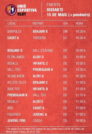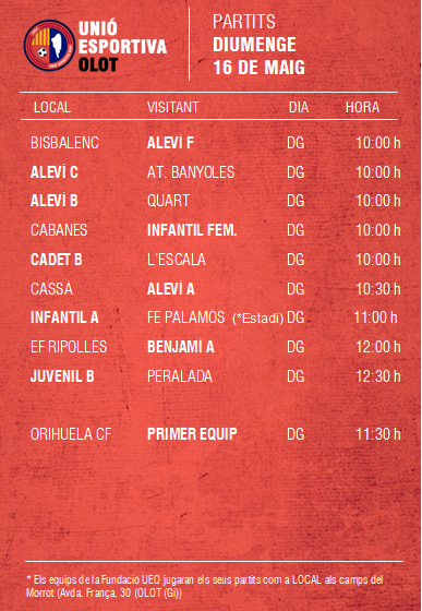 L’agenda de la jornada al FUTBOL BASE (15 i 16 maig) 11 maig 2021Oriol Boix BufiasFutbol FEMENÍ, Escola de FUTBOL, SECCIONS, General, Actualitat, Destacat, Futbol BASE, Notícies0