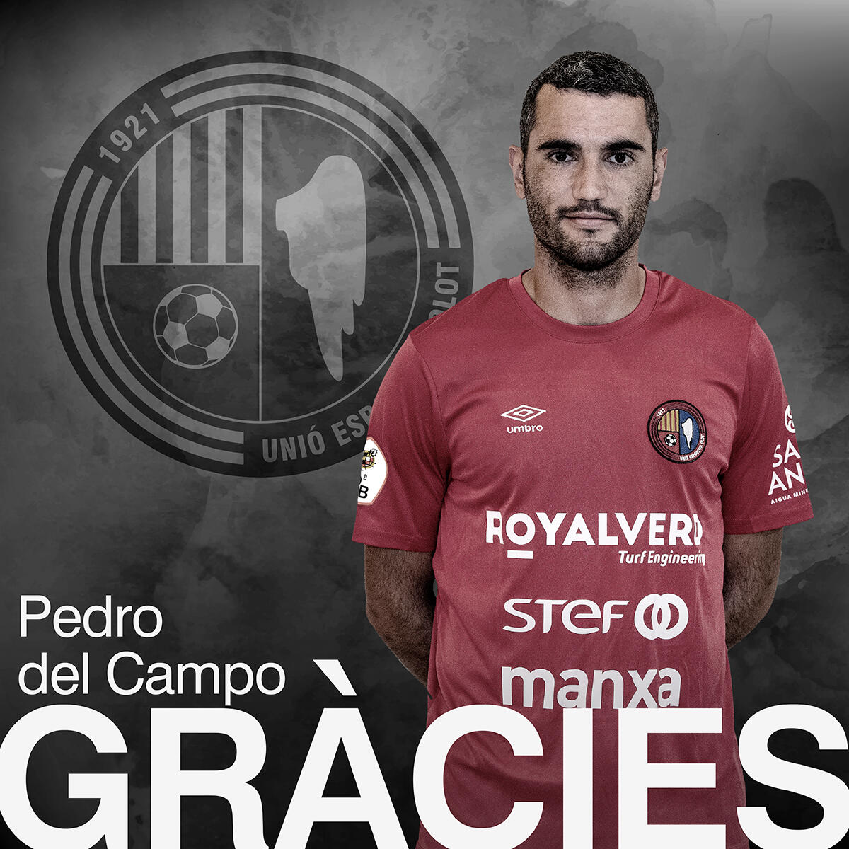 Pedro del Campo González s’acomiada avui de la UEO després de quatre cursos i més d’un centenar de partits (106) que l’han consolidat a Segona B. Després d’una llarga trajectòria a la UE Figueres a Tercera Divisió, el jugador figuerenc va decidir fer el salt a la categoria de bronze, on va madurar com a futbolista i va explotar totes les seves virtuts des de la zona de creació. Criteri, posicionament, joc d’associació, canvi de ritme i detalls tècnics de molts quirats que han despertat l’admiració de l’afició olotina i del públic en general. Ara, però, toca separar els camins i estem convençuts que estàs més que preparat per assumir els reptes ambiciosos que t’esperen. Per professionalitat, per qualitat humana i per talent futbolístic.