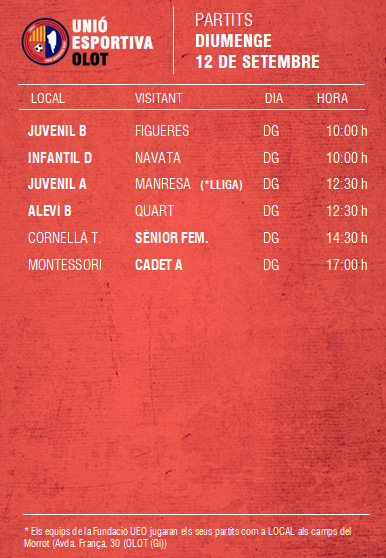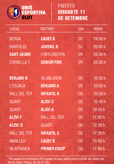 L’agenda de partits al FUTBOL BASE (11 i 12 setembre) 07 set. 2021Oriol Boix BufiasActualitat, Destacat, Futbol BASE, Notícies, Futbol FEMENÍ, Escola de FUTBOL, SECCIONS, General0
