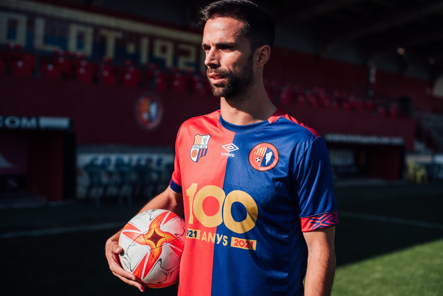 Aquest dimecres al migdia s’ha fet a l’Estadi Municipal la presentació del partit de Veterans d’aquest dissabte entre la Unió Esportiva Olot i el FC Barcel. Un duel amb entrada gratuïta en el qual s’estrenarà la samarreta oficial del Centenari, que també s’ha presentat avui amb el capità Albert Blázquez com a model i que és obra de Gelis Dissenyadors. La tarda es completarà amb una taula rodona a la Sala Torín sobre els orígens del club amb el nom “Quan Gamper i el FC Barcelona van venir a Olot”.