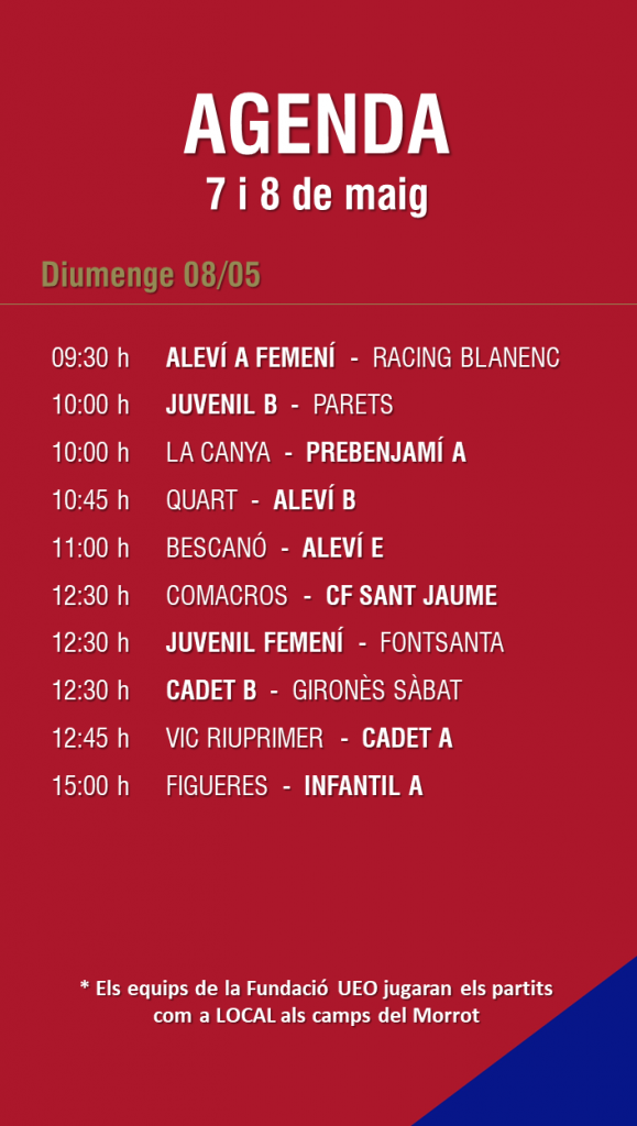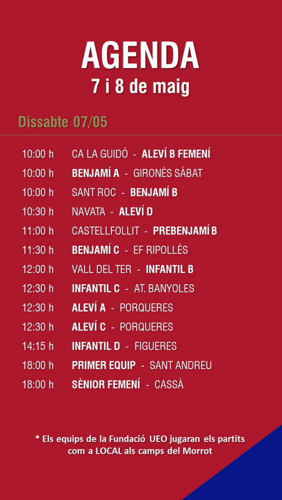 L’agenda de partits al FUTBOL BASE (7 i 8 maig) 02 maig 2022Oriol Boix BufiasSECCIONS, General, Actualitat, Destacat, Futbol BASE, Notícies, Futbol FEMENÍ, Escola de FUTBOL0