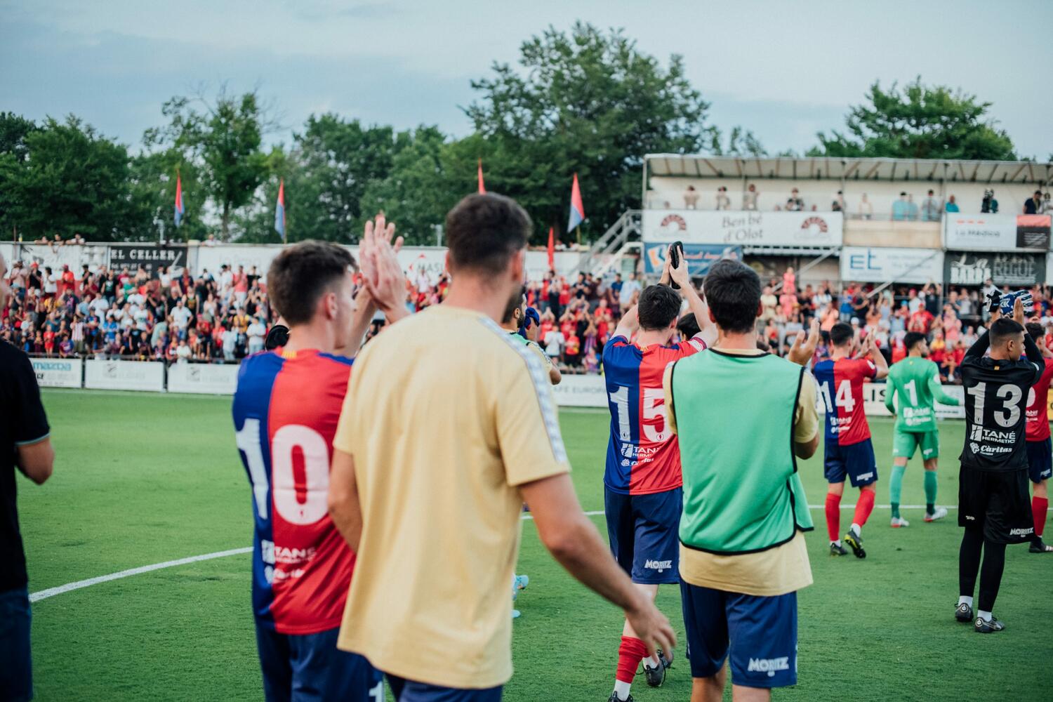Incidències: primer amistós de pretemporada amb 3.300 espectadors a l’Estadi Municipal d’Olot. En la prèvia s’ha fet un reconeixement a la Comissió del Centenari, també a Jordi Vayreda, que ha fet el logo del Centenari, a Gelis Dissenyadors, que ha fet la samarreta del Centenari, i a INTEGRA, que ha fet el cartell del Centenari. També hi ha hagut un reconeixement a Metalquimia, patrocinador del futbol base, i els jugadors dels dos equips han lluït les ulleres de Realitat Millorada de la Fundació Albert Bosch en la lluita contra el càncer infantil.