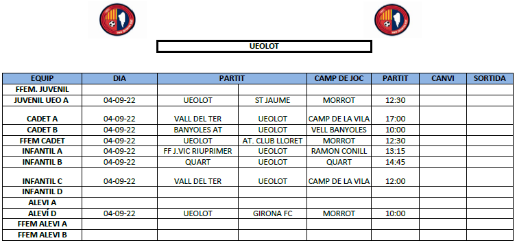L’agenda d’amistosos al FUTBOL BASE (3 i 4 setembre) 30 ag. 2022Oriol Boix BufiasGeneral, Actualitat, Destacat, Futbol BASE, Notícies, Futbol FEMENÍ, Escola de FUTBOL, SECCIONS0