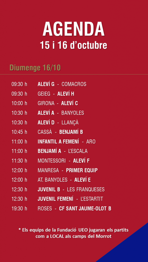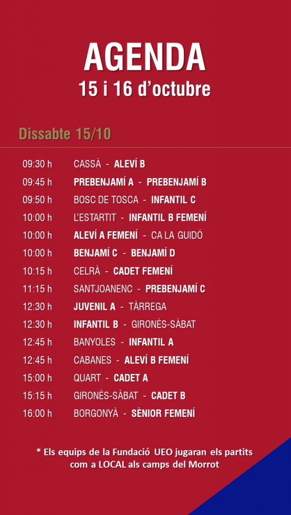 L’agenda de partits al FUTBOL BASE (15 i 16 octubre) 11 oct. 2022Oriol Boix BufiasEscola de FUTBOL, SECCIONS, General, Actualitat, Destacat, Futbol BASE, Futbol FEMENÍ0